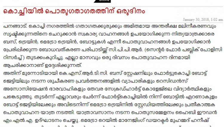 One day for Public Transport in Kochi